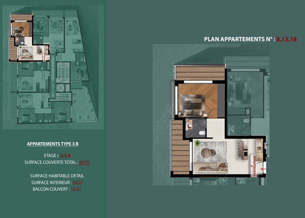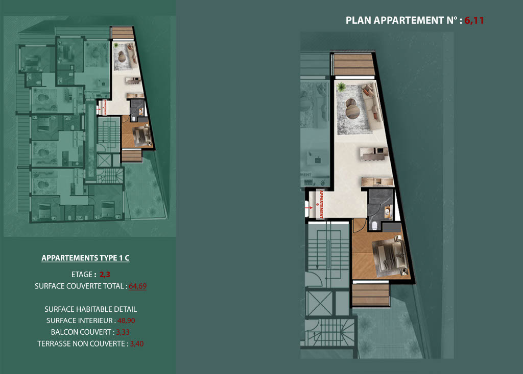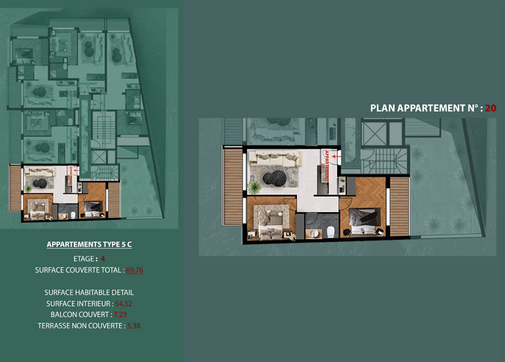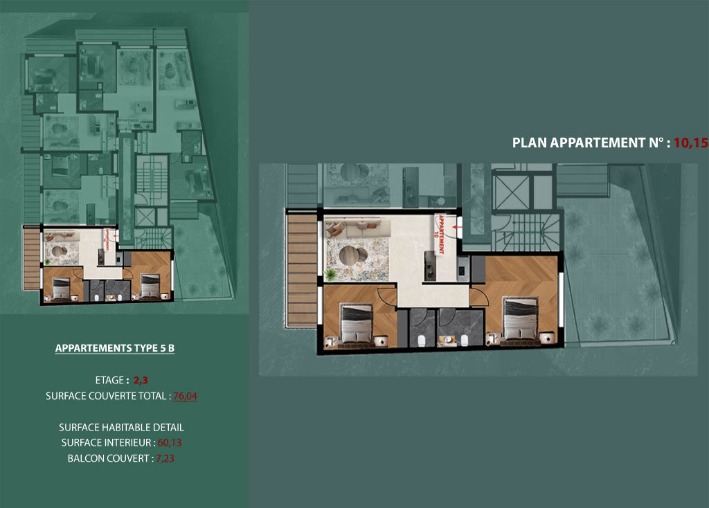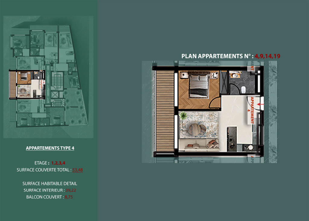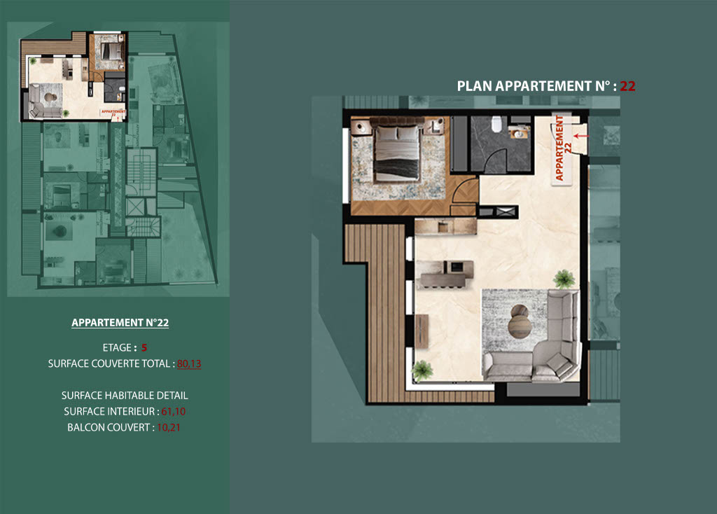 Cette résidence exclusive, nichée dans un cadre sécurisé et gardé, se compose d’une dizaine d’appartements allant de 53 à 78 m2 .